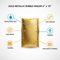 InkrediPack™ 6" X 10" #0 Gold Self Seal Metallic Foil Glamour Bubble Mailers - 20 Pack (Usable size: 6" X 9")